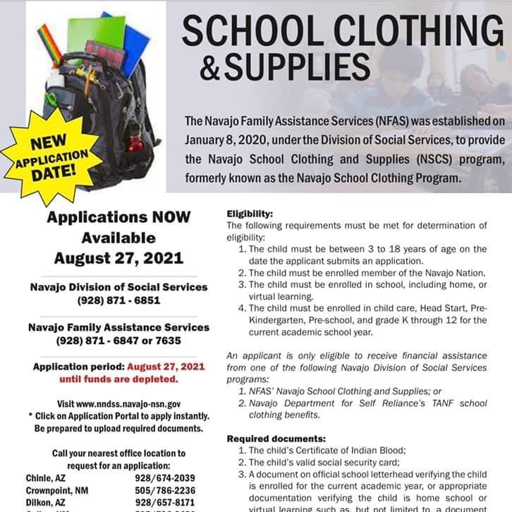2021 Navajo Nation School Clothing Supplies Program Page Usd 8